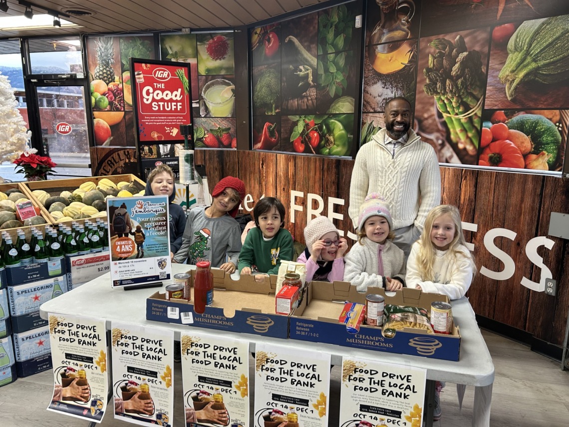 L’école Entre-Lacs souhaite également exprimer sa sincère reconnaissance à ses partenaires communautaires qui ont contribué au succès de cette collecte : IGA Penticton a généreusement offert un espace à l’intérieur du magasin, permettant aux élèves d’y installer une table de collecte et d’échanger avec les clients qui ont fait preuve d’une grande générosité. Un immense merci est également adressé au magasin Canadian Superstore pour son don important de denrées alimentaires non périssables.